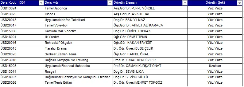 2023-2024 Eğitim-Öğretim Yılı Bahar Yarıyılı Üniversite Ortak Seçmeli Derslerine İlişkin Derslik ve Ders Saati Bilgileri